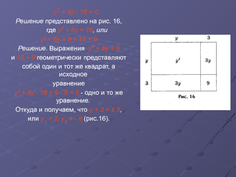 у2 + 6у - 16 + 9 - 9 = 0 - одно и то же уравнение.