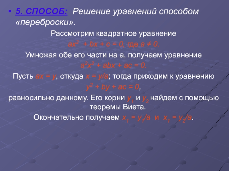 Слайд 125. СПОСОБ: Решение уравнений способом «переброски».
