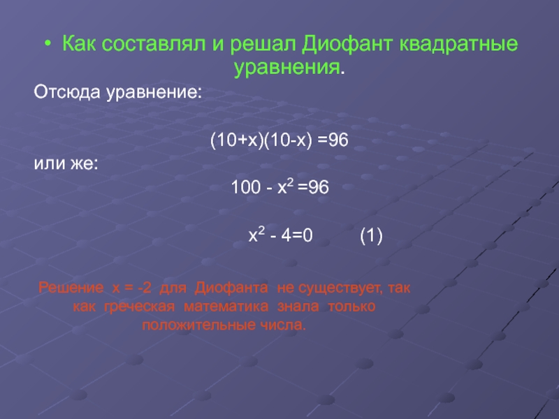 Слайд 3Как составлял и решал Диофант квадратные уравнения.