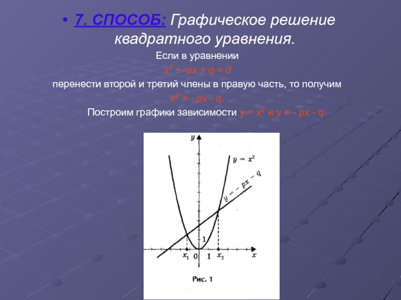 7. СПОСОБ: Графическое решение квадратного уравнения.