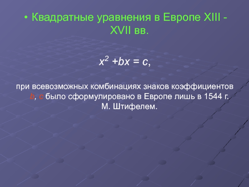 Слайд 6Квадратные уравнения в Европе ХIII - ХVII вв.