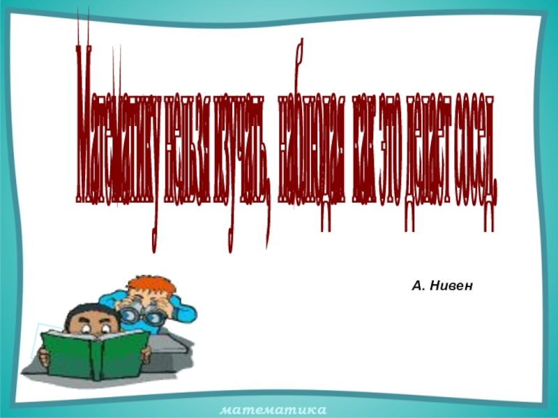 Математику нельзя изучать, наблюдая как это делает сосед. А. Нивен