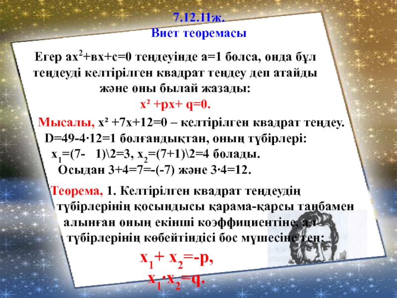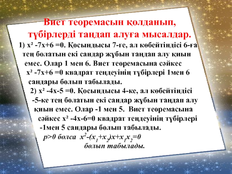 Виет теоремасы көбінесе