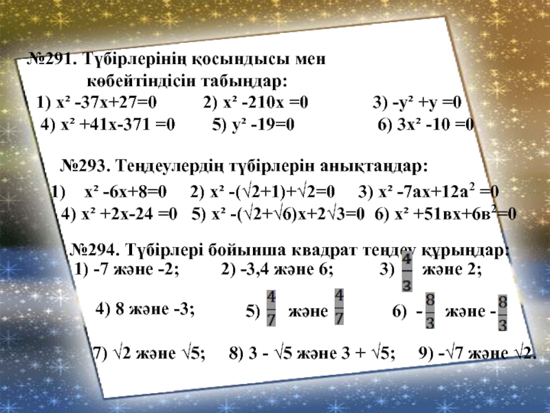 №294. Түбірлері бойынша квадрат теңдеу құрыңдар: