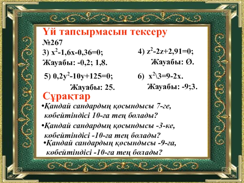 №293. Теңдеулердің түбірлерін анықтаңдар: