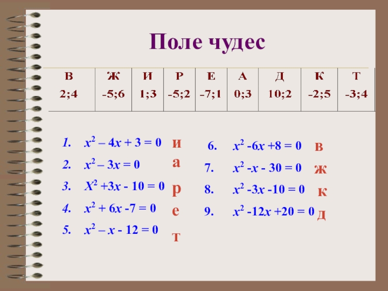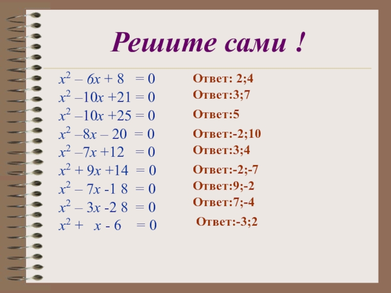 Х2 – Х – 6 = 0 Х2 + Х – 6 = 0
