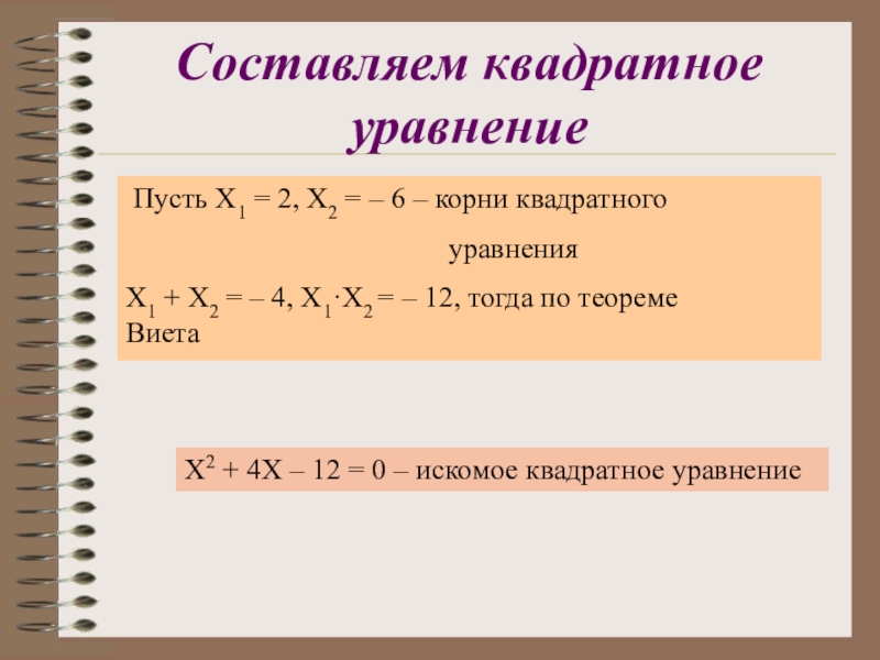 Х2 + 4Х – 12 = 0 – искомое квадратное уравнение