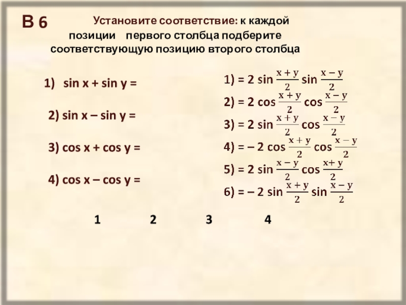4) cos x – cos y =