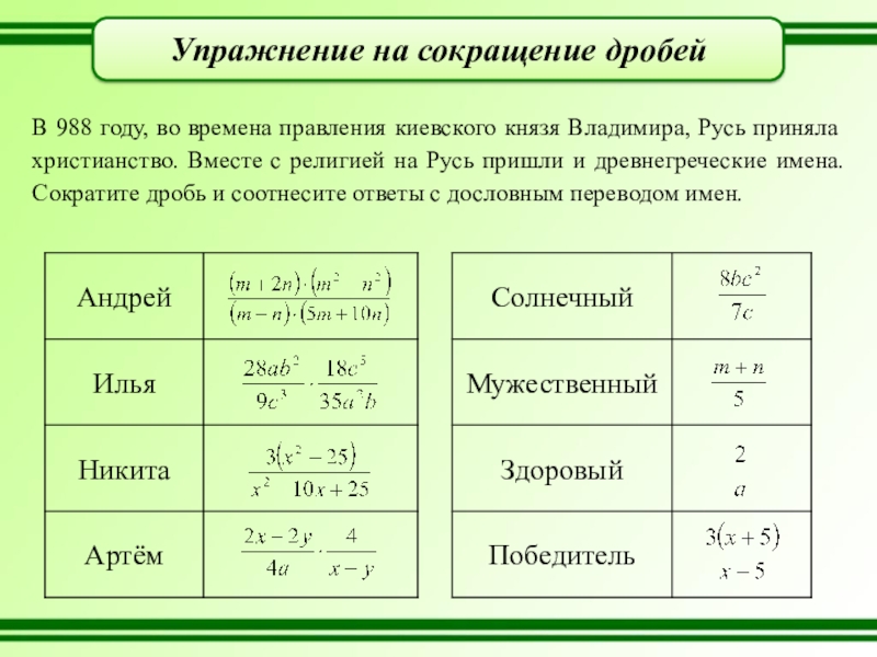 Презентация по алгебре Умножение и деление алгебраических дробей Алгебра