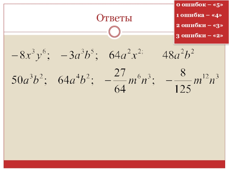 Повторение правил по темам: «Степени», «Одночлены»