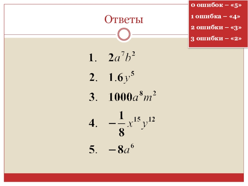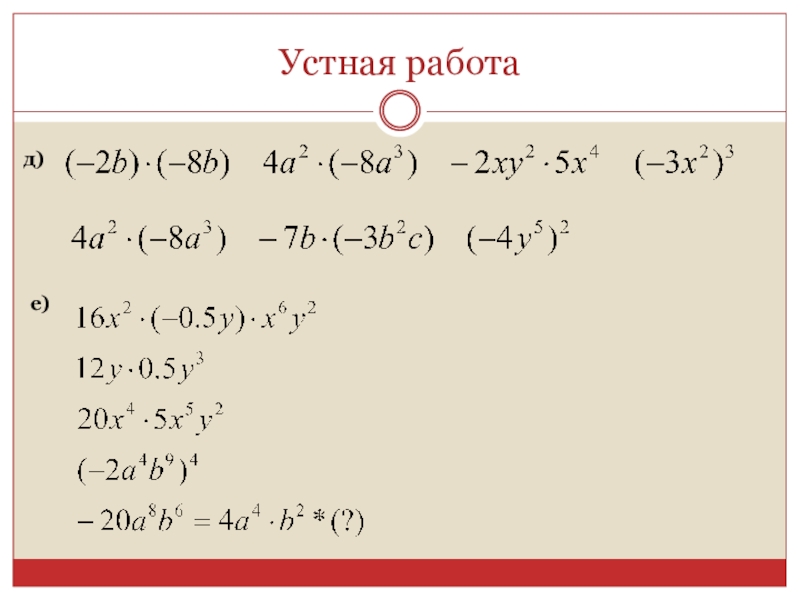 Презентация, доклад по алгебре: Умножение одночленов. Возведение одночленов в степень (7 класс)