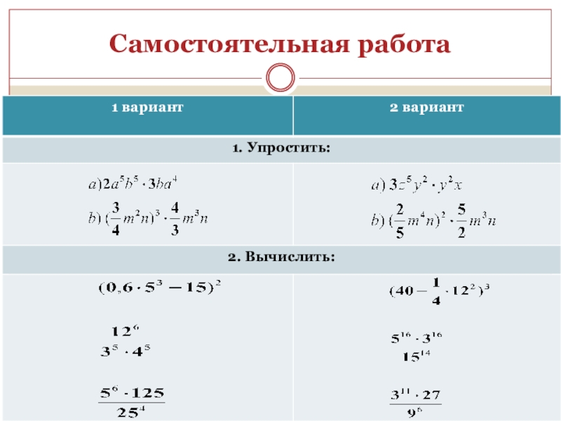 1. Представить выражение в виде степени