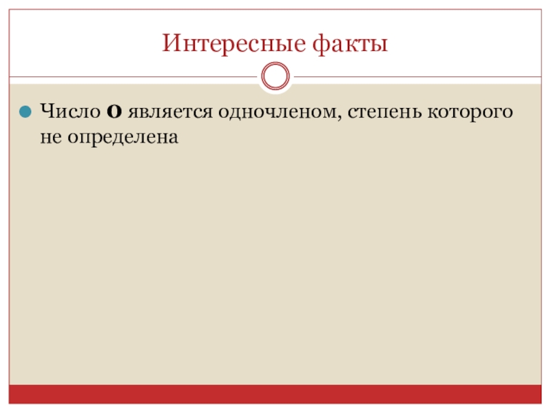 Интересные фактыЧисло 0 является одночленом, степень которого не определена