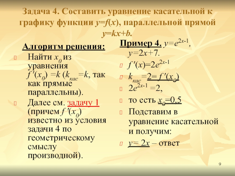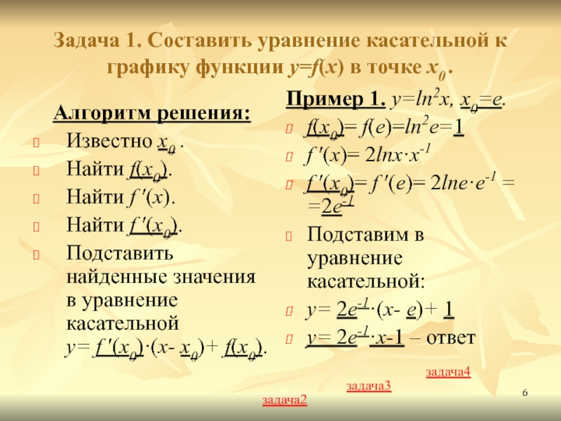 Далее см. задачу 1 (причем f ′(x0) известно из условия задачи 4 по геометрическому смыслу производной).