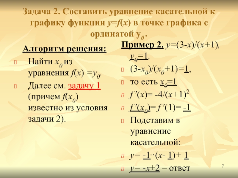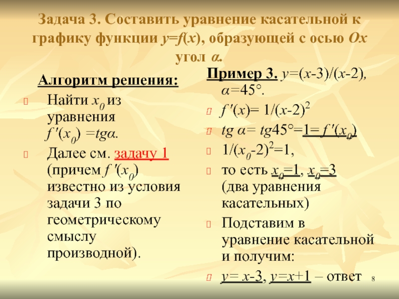Далее см. задачу 1 (причем f ′(x0) известно из условия задачи 3 по геометрическому смыслу производной).
