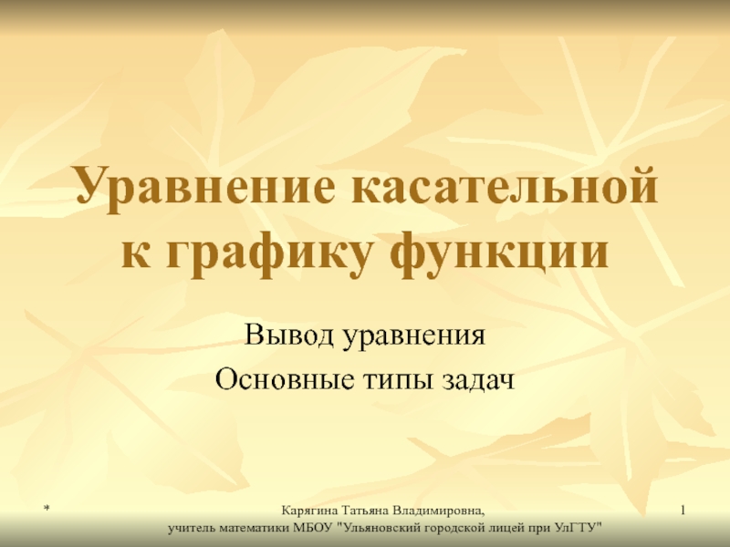 1. Составить уравнение касательной к графику функции y=f(x) в точке x01 в общем виде.