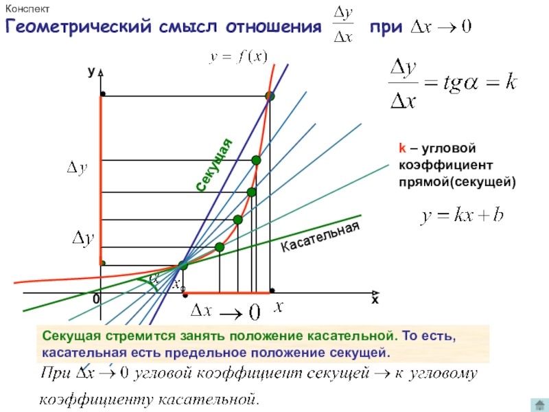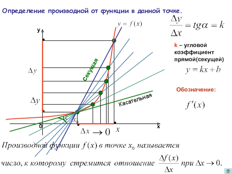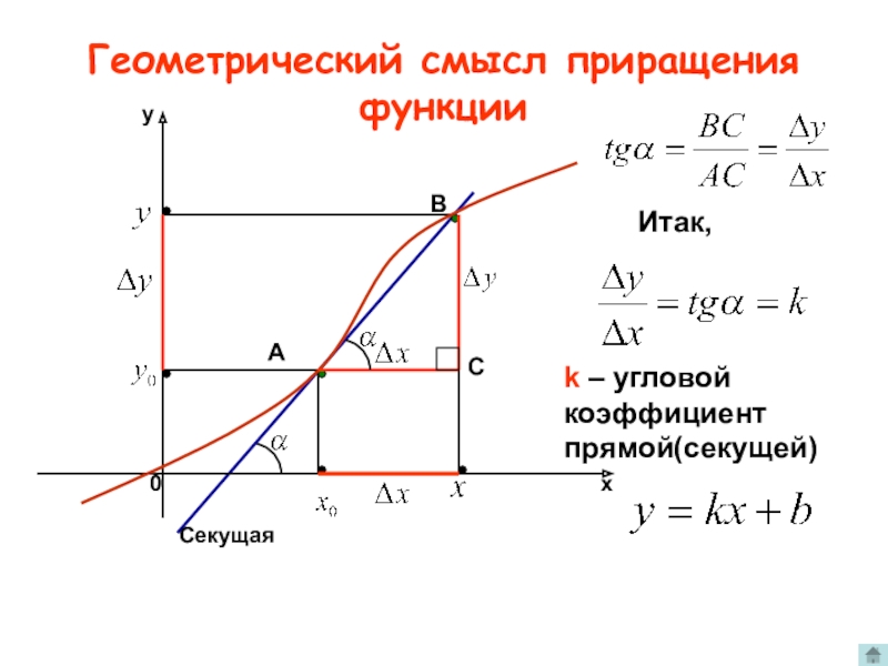 k – угловой коэффициент прямой(секущей)