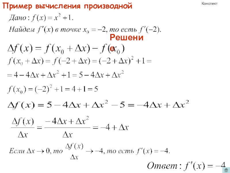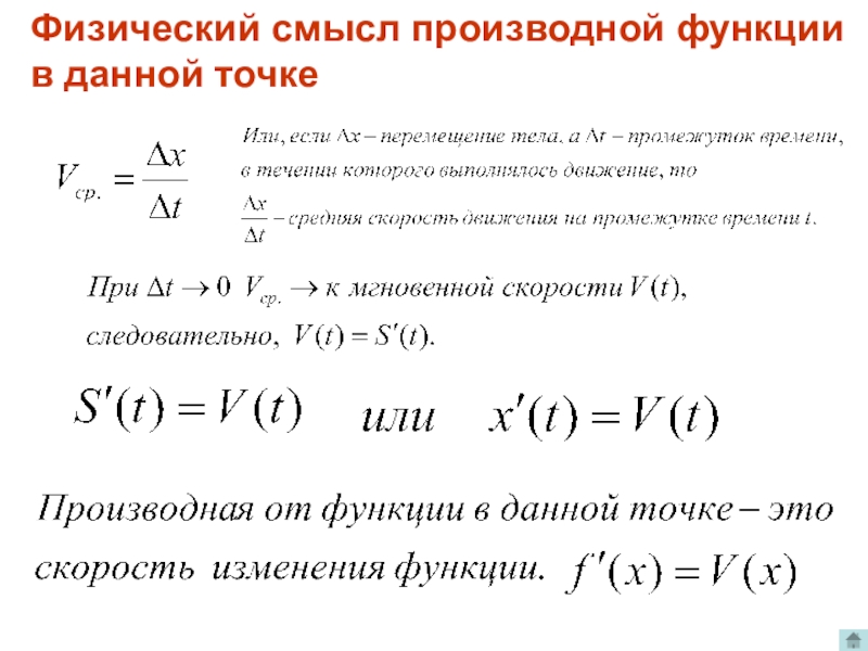 Производная от функции в данной точке равна угловому коэффициенту касательной, проведенной к графику функции в этой точке.