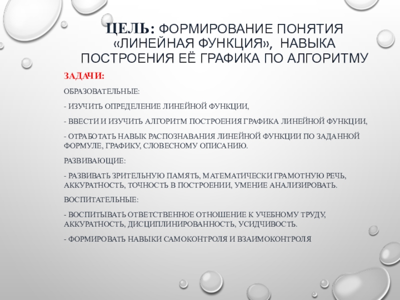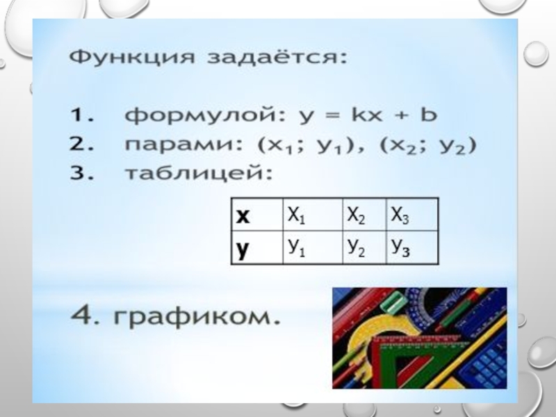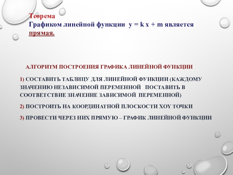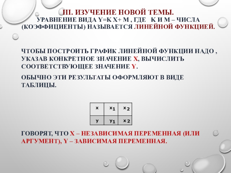 ЧТОБЫ ПОСТРОИТЬ ГРАФИК ЛИНЕЙНОЙ ФУНКЦИИ НАДО , УКАЗАВ КОНКРЕТНОЕ ЗНАЧЕНИЕ X, ВЫЧИСЛИТЬ СООТВЕТСТВУЮЩЕЕ ЗНАЧЕНИЕ Y.