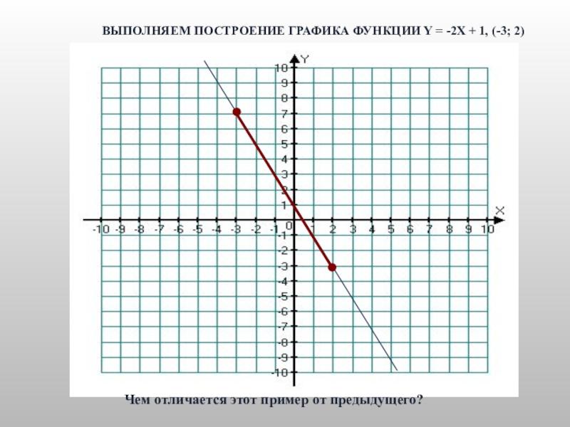 ПРЯМУЮ ЛИНИЮ. ЭТО ГРАФИК УРАВНЕНИЯ Y = -2X + 1. ДАЛЕЕ, ВЫДЕЛИМ ОТРЕЗОК, СОЕДИНЯЮЩИЙ ПОСТРОЕННЫЕ ТОЧКИ.