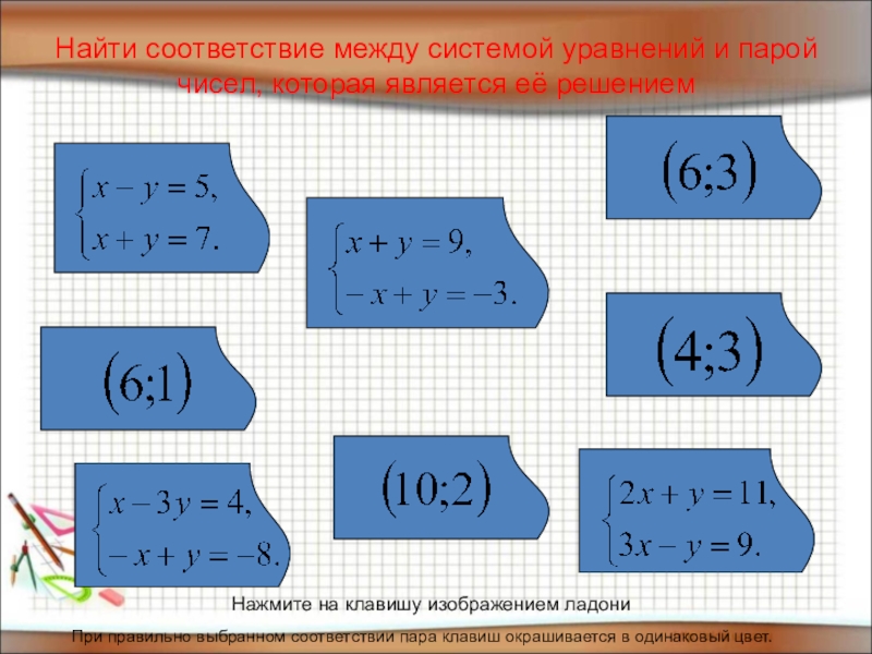 При правильно выбранном соответствии пара клавиш окрашивается в одинаковый цвет.