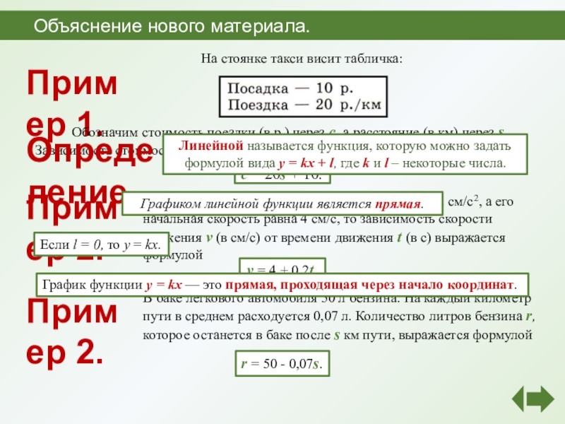 формулой вида у = kx + l, где k и l – некоторые числа.