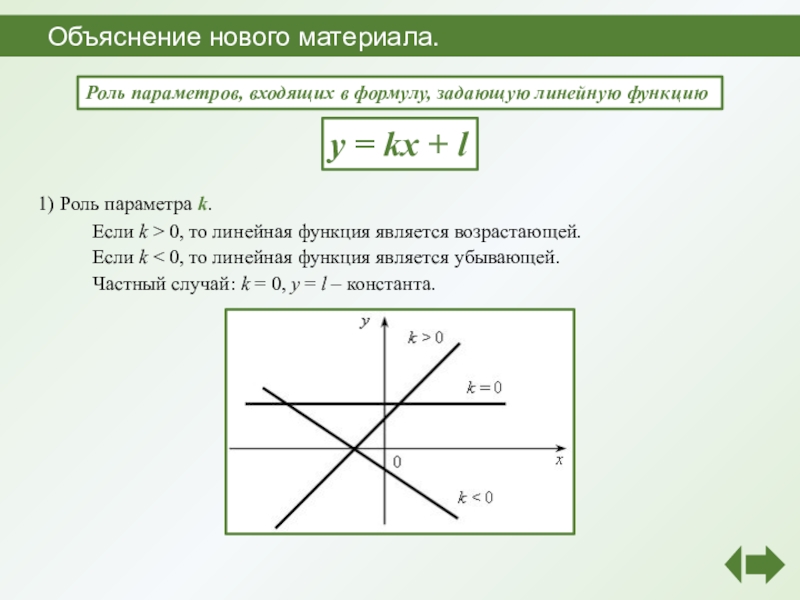 Роль параметров, входящих в формулу, задающую линейную функцию
