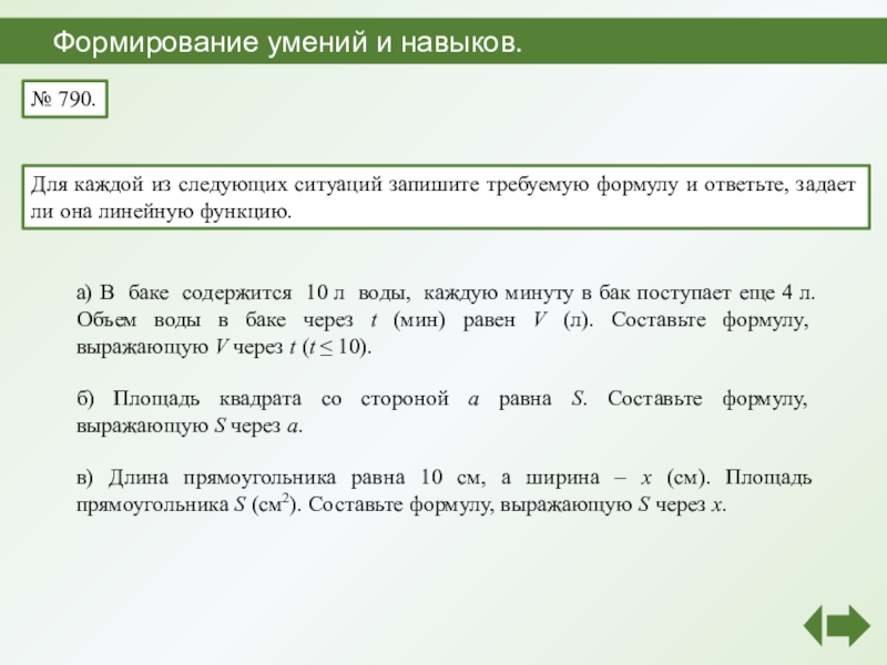 Для каждой из следующих ситуаций запишите требуемую формулу и ответьте, задает ли она линейную функцию.
