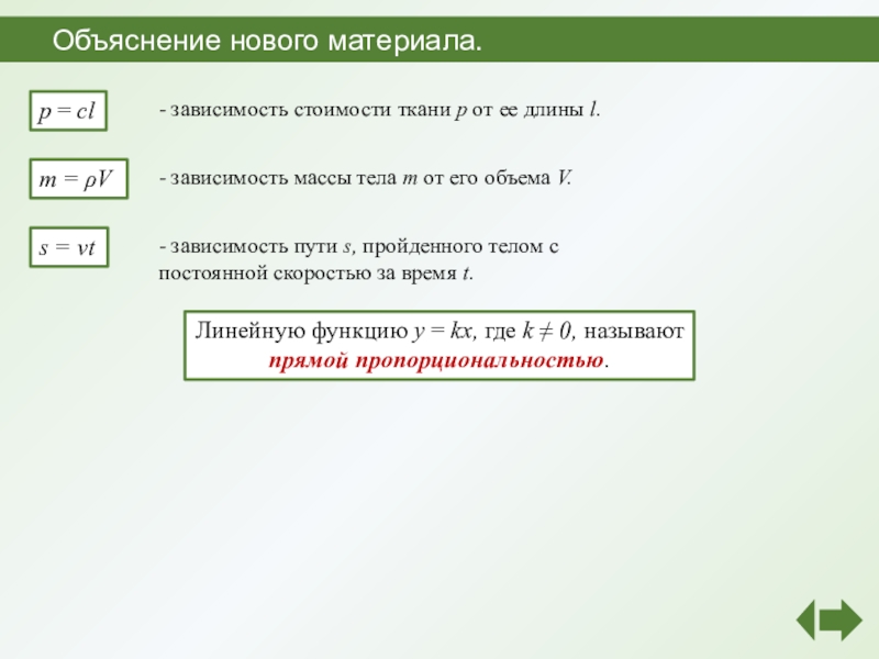 - зависимость пути s, пройденного телом с постоянной скоростью за время t.