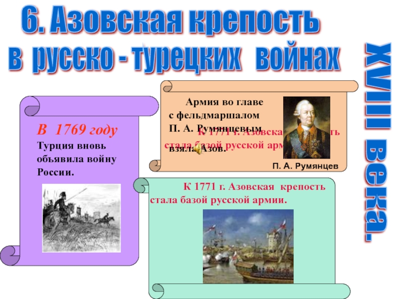 Армия во главе с фельдмаршалом П. А. Румянцевым взяла Азов.