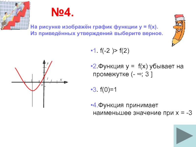 2.Функция у = f(х) убывает на промежутке (- ∞; 3 ]