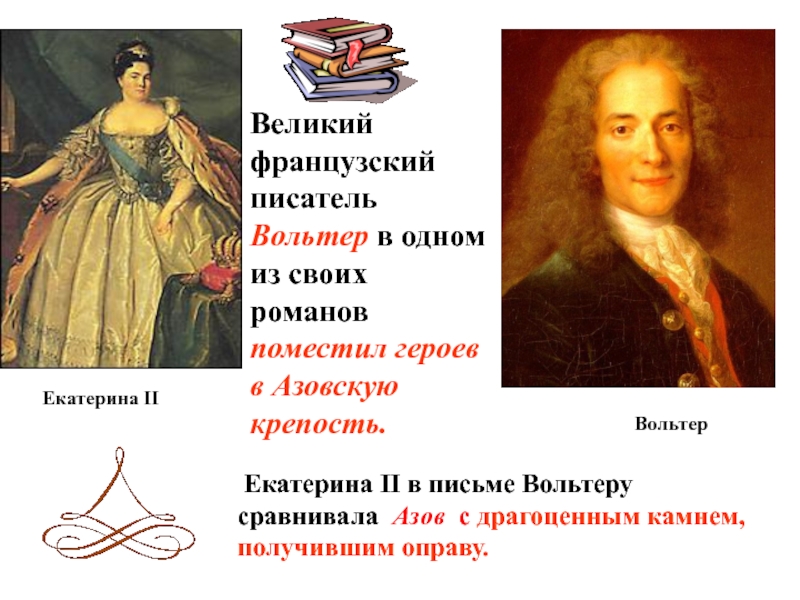 Великий французский писатель Вольтер в одном из своих романов поместил героев в Азовскую крепость.