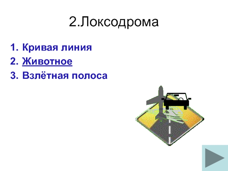 2.Локсодрома -кривая линия. ЛИНИЯ НА ПОВЕРХНОСТИ ВРАЩЕНИЯ, ПЕРЕСЕКАЮЩАЯ ВСЕ МЕРИДИАНЫ ПОД ПОСТОЯННЫМ УГЛОМ.