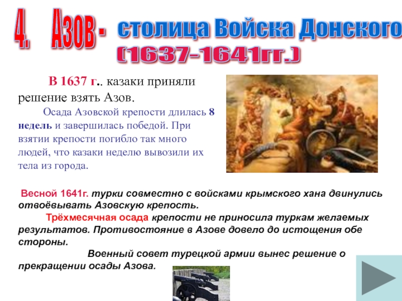 Весной 1641г. турки совместно с войсками крымского хана двинулись отвоёвывать Азовскую крепость.