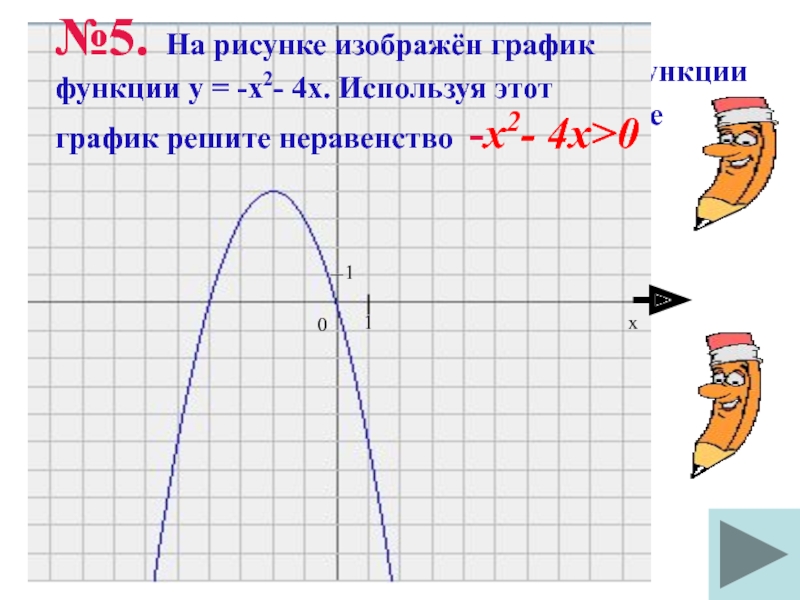 №5. На рисунке изображён график функции у = -х2- 4х. Используя этот график решите неравенство -х2- 4х>0