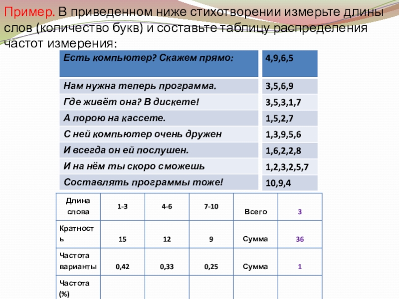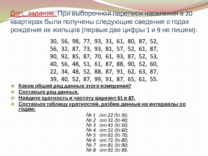 Ряд данных – все реальные результаты измерения, выписанные в определенном порядке без повторений, например, по возрастанию: