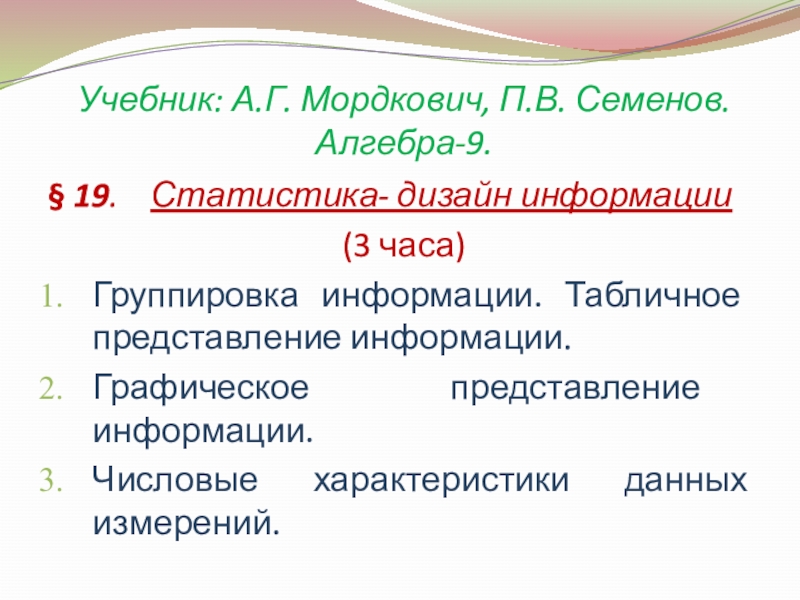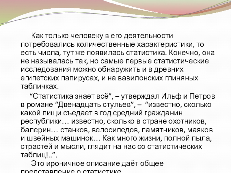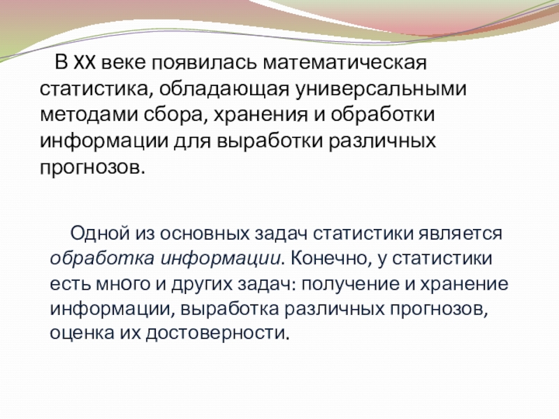 Одной из основных задач статистики является обработка информации. Конечно, у статистики есть много и других задач: получение и хранение информации, выработка различных прогнозов, оценка их достоверности.
