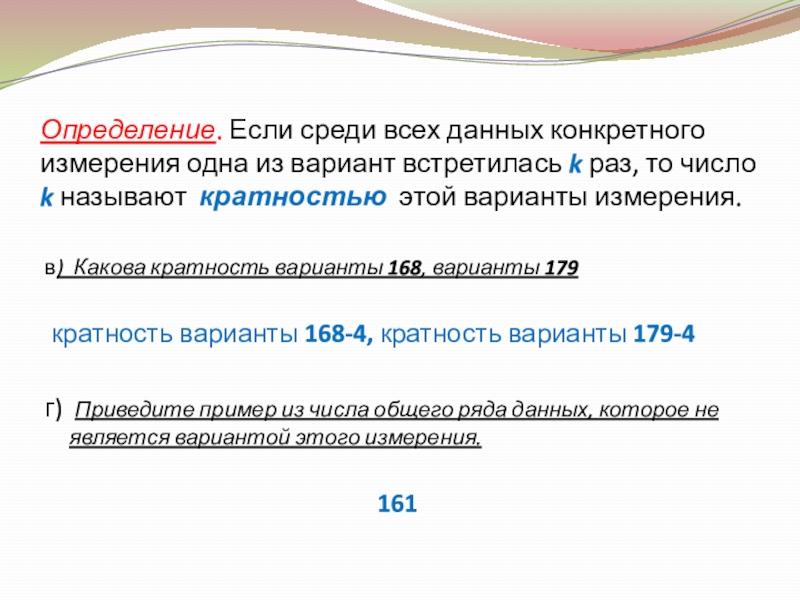 г) Приведите пример из числа общего ряда данных, которое не является вариантой этого измерения.