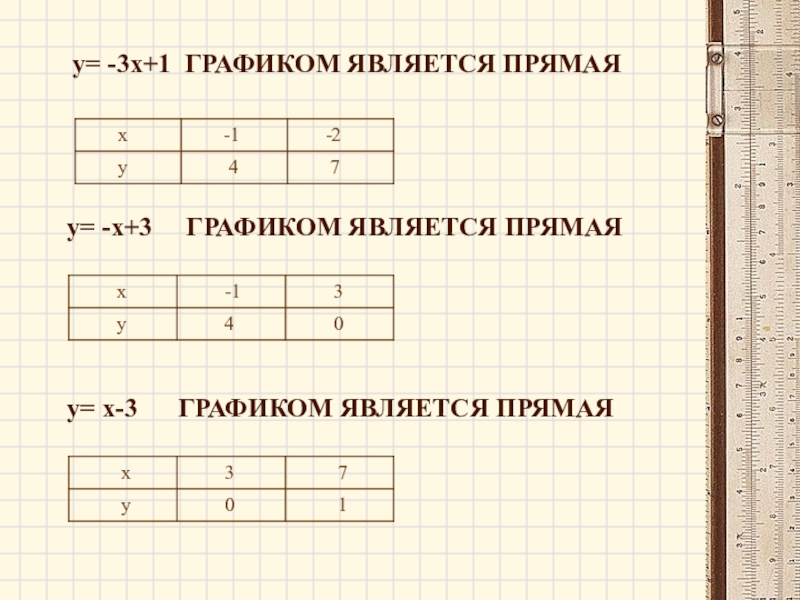 y= x-3 ГРАФИКОМ ЯВЛЯЕТСЯ ПРЯМАЯ