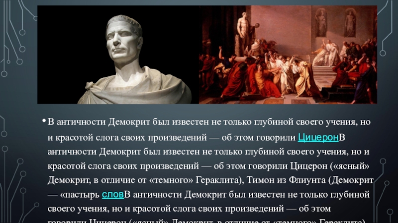 Слайд 4В античности Демокрит был известен не только глубиной своего учения, но