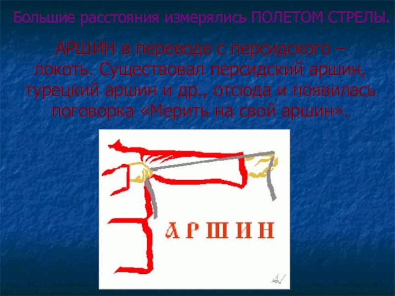 Большие расстояния измерялись ПОЛЕТОМ СТРЕЛЫ.
