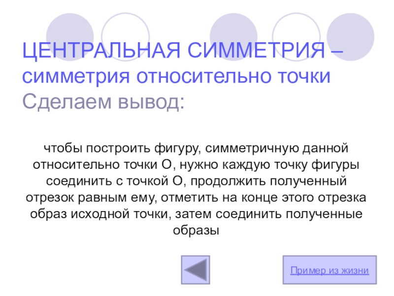 ЦЕНТРАЛЬНАЯ СИММЕТРИЯ – симметрия относительно точки