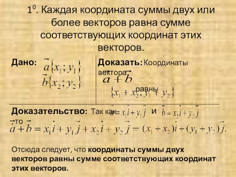 Назовите разложение вектора по координатным векторам и