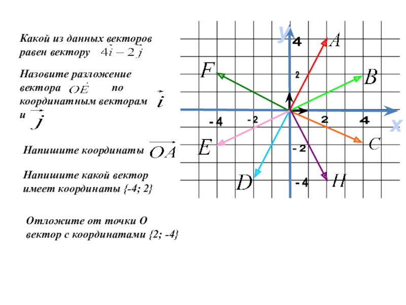 Напишите какой вектор имеет координаты {-4; 2}