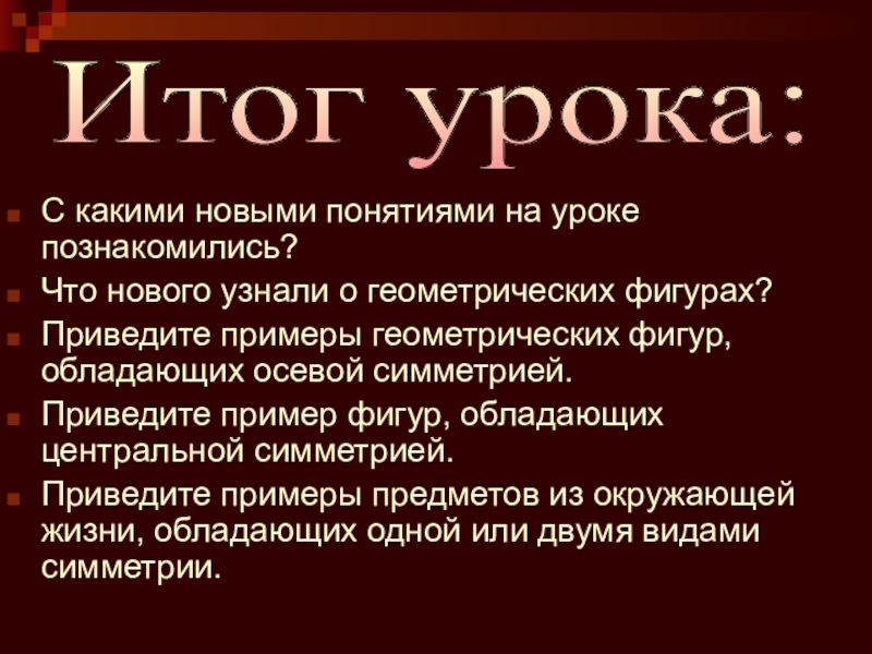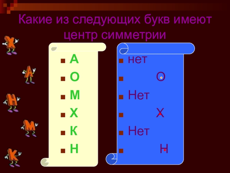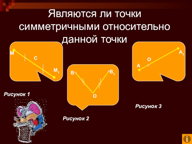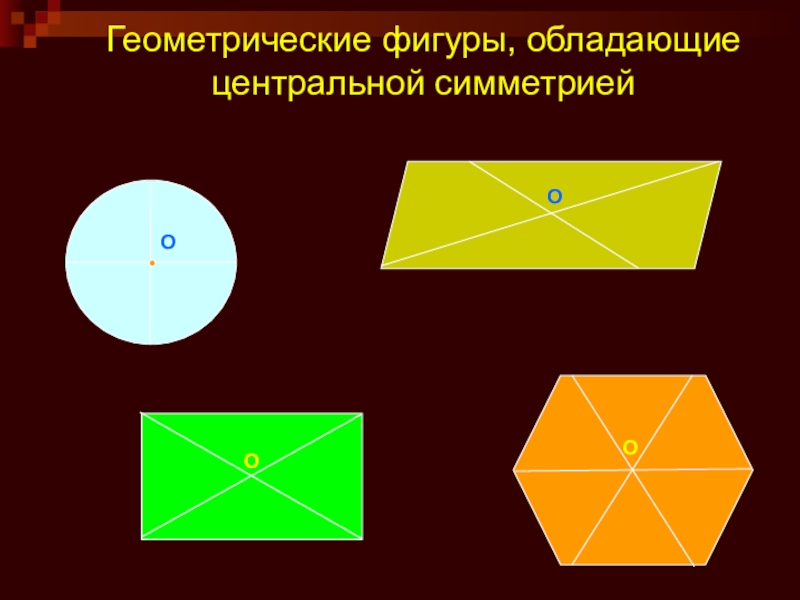 Если при симметрии относительно точки фигура переходит в себя, то она называется центрально – симметричной, а точка О называется центром симметрии. Например, параллелограмм, … .
