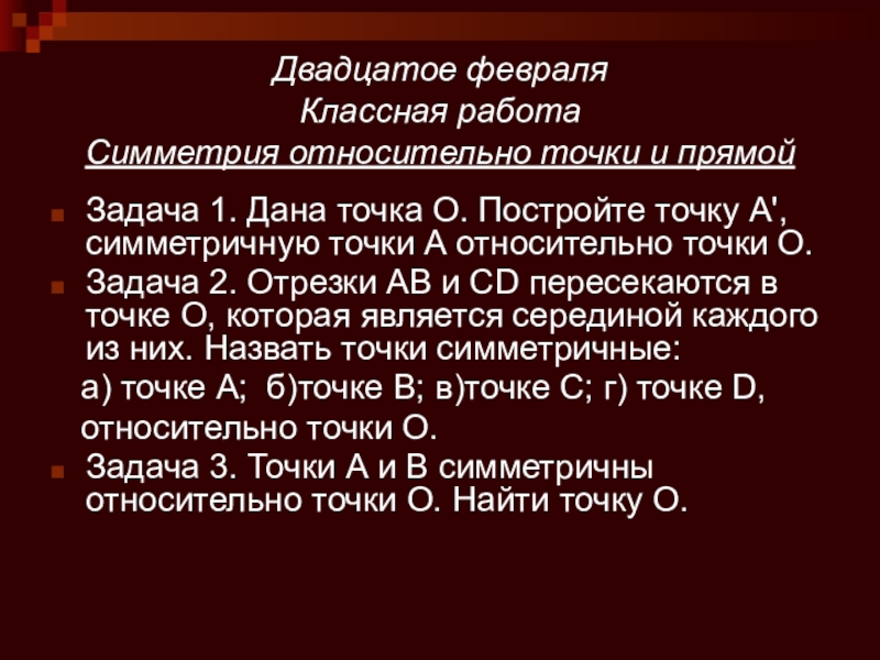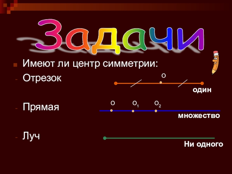 Опр. Точка X' называется симметричной . точке X относительно точки О, если точка . О является серединой отрезка XX'.