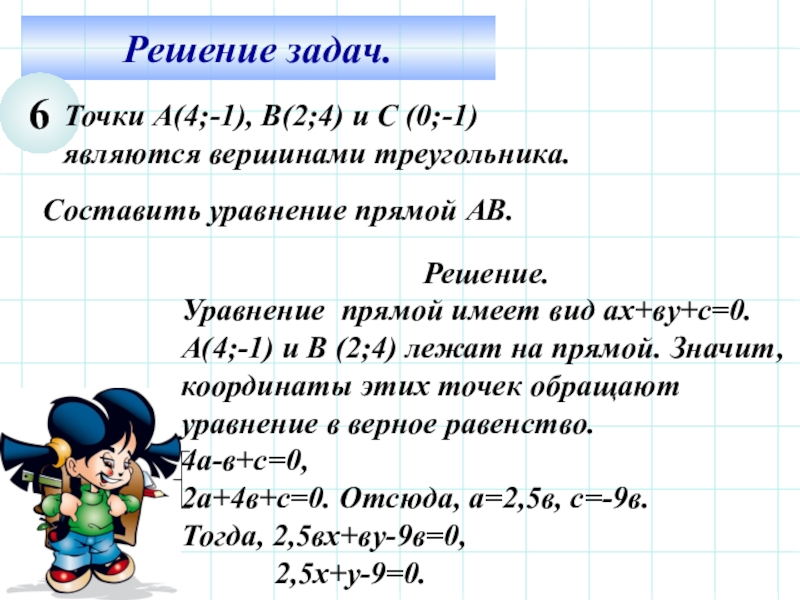 А(4;-1) и В (2;4) лежат на прямой. Значит, координаты этих точек обращают уравнение в верное равенство.