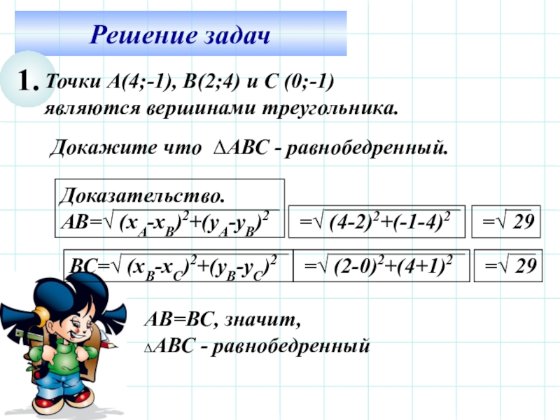 R=АВ=√ (хА-хВ)2+(уА-уВ)2
