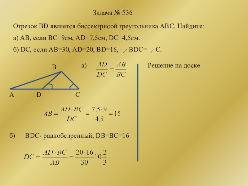 Отрезок BD является биссектрисой треугольника АВС. Найдите: