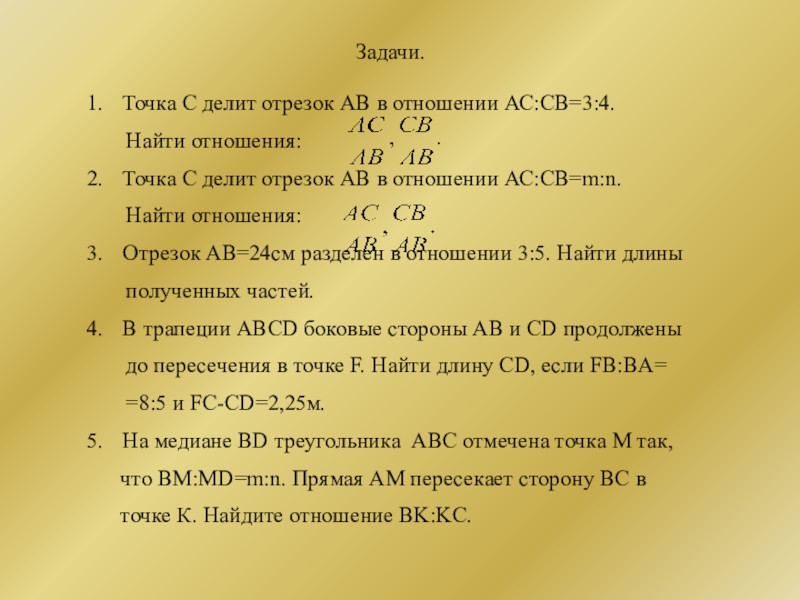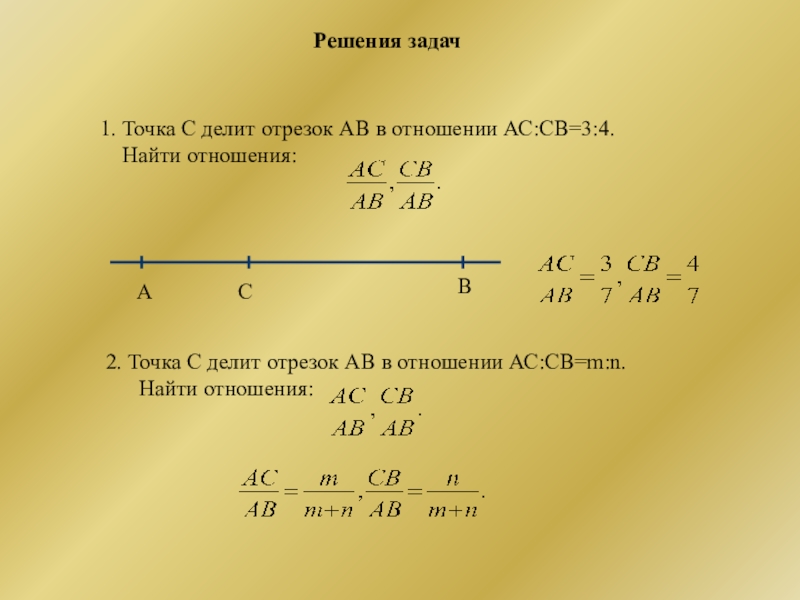 2. Точка С делит отрезок АВ в отношении АС:СВ=m:n.